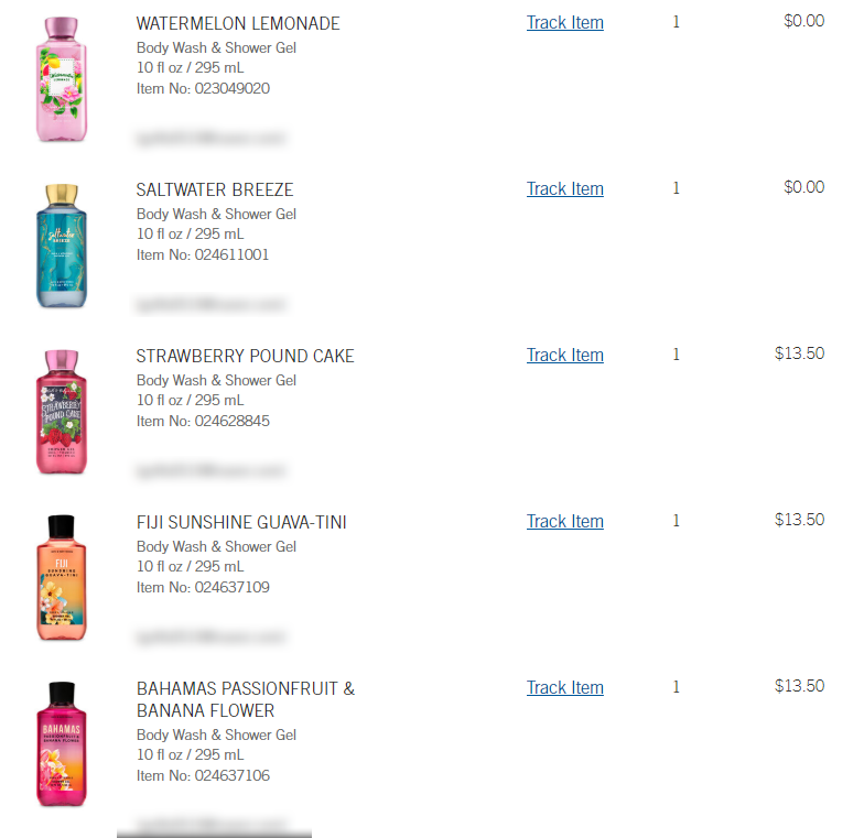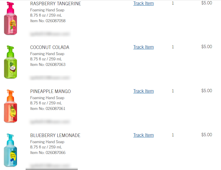 바디워시 5개, 핸드솝 4개, 캔들 1개 총 $85